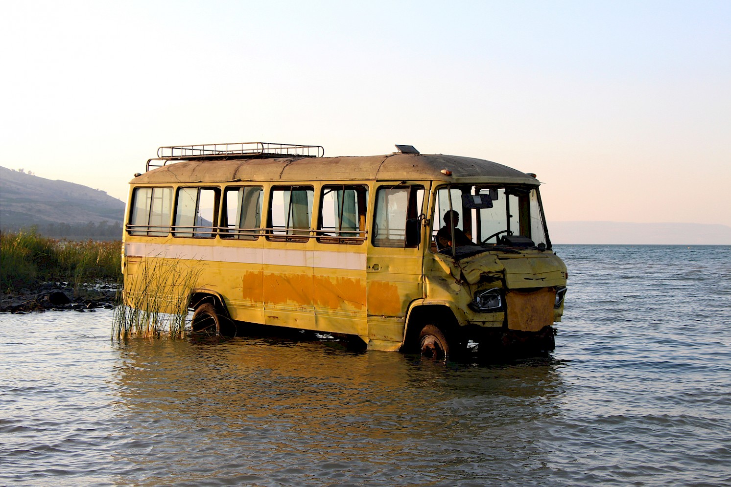 The film begins with a green raft carrying wheelchair-bound people, wearing orange life jackets. As the raft sways gently on the rippled water, an old beat-up yellow bus waits along the shoreline. This is the opening scene of an arduous passage that reenacts a catastrophic accident that is spectacular in its beauty.